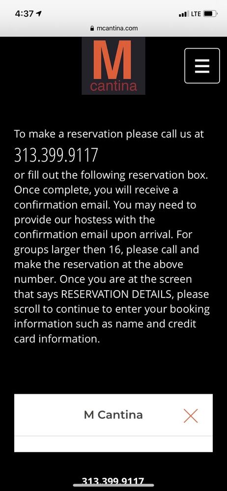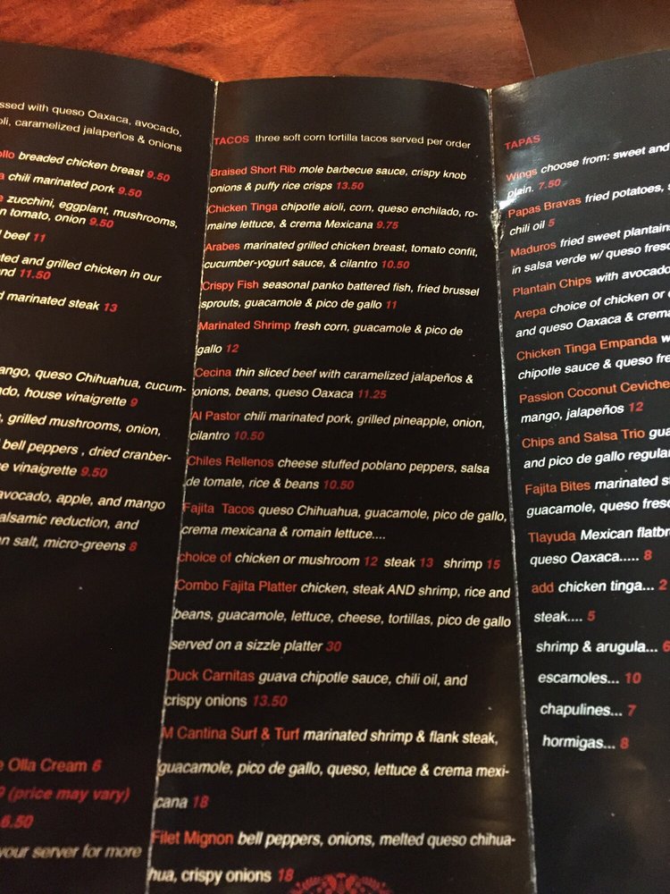 M Cantina Menu